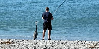 Our condo is home to great fishing right on our beautiful private beach and don't be surprised if a Blue Heron doesn't come by to keep you company.